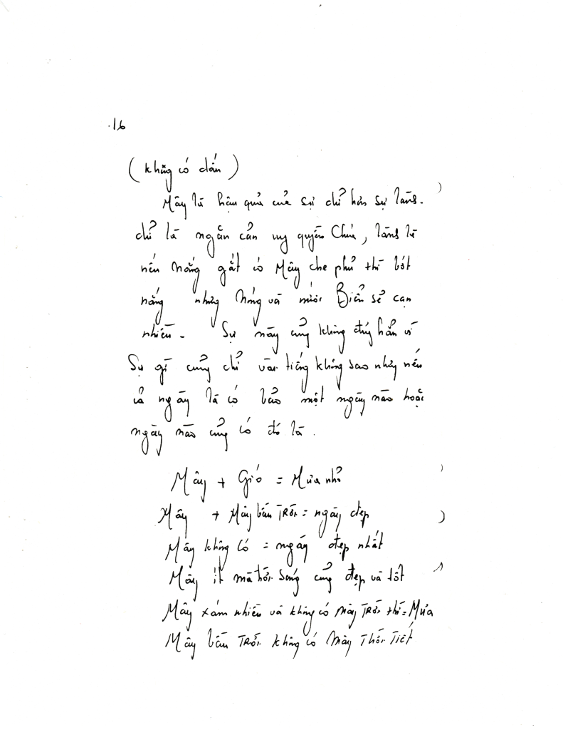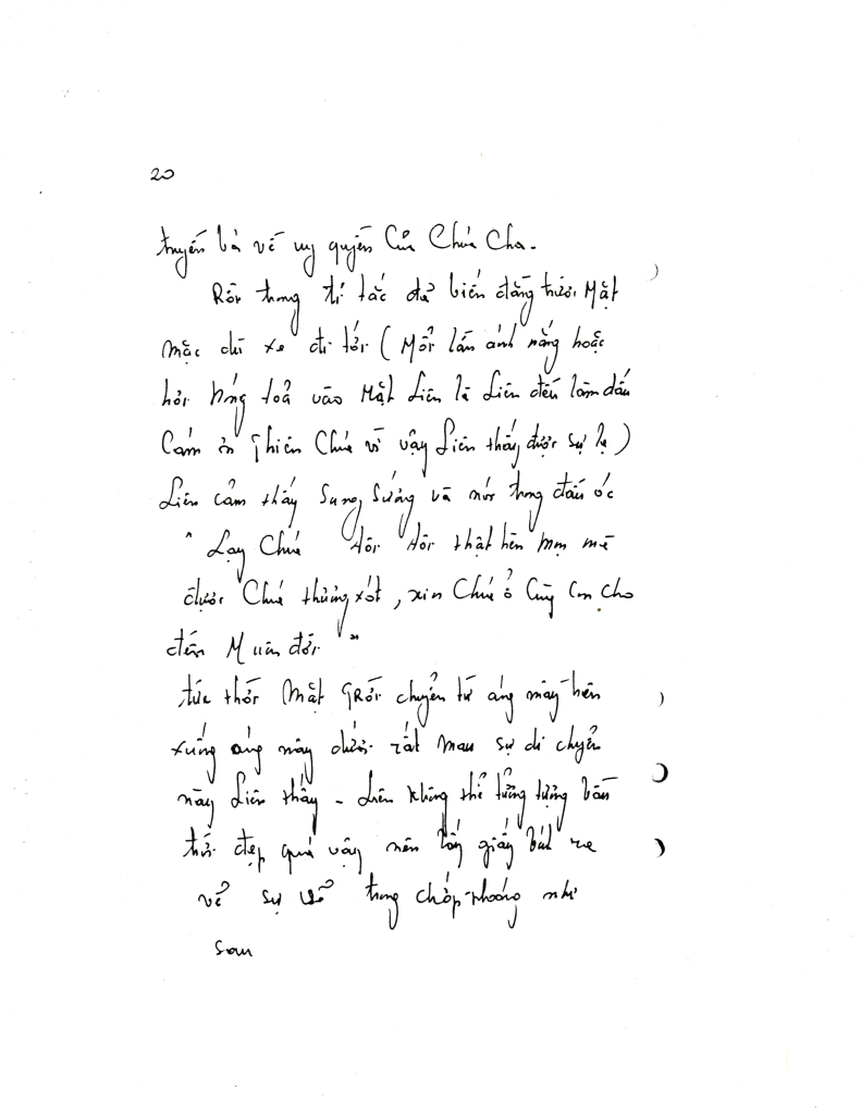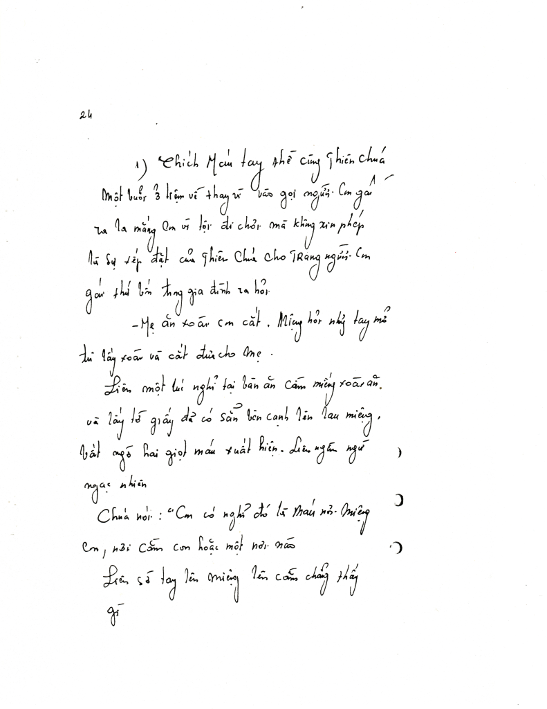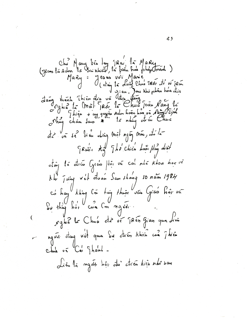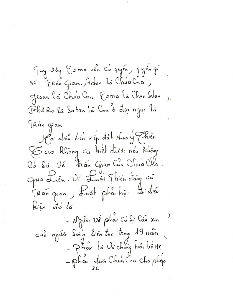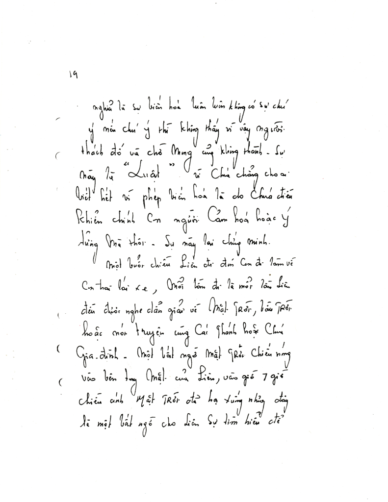 Sau hai Tập viết I / 2007 – 2009 viết hơn hoặc ít hơn 600 trang có hình trao cho giáo hội . song song qua báo đạo ,đời truyền lới về phúc Âm , khoa học ghi nhận vào thế kỷ , về hiện tượng trái đất ; lời thứ hai mạc khải 1984 . chặng đường dài làm việc trong âm thầm mà lluôn cả trong bổn phận gia đình để có sự bình yên , mà cũng vì thế tôi trở về là tôi đã tràn đầy trong Chúa từ 1986 qua phép , trong phép lạ như lon nước táo hóa MÁU hỏi tôi về đức tin tôi có tin là chúa . và phong bánh mua cùng lúc chúa nói cho các con của tôi . Phong bánh đã mở ra tối cùng ngày sau khi đọc kinh xong . Bánh đã bể cả phong bánh mà chỉ còn lại một bánh với chữ JS . Tôi đã xúc động mà ôm lòng ngực cảm tạ chúa ̣̣̣- ĐỀ mục này như tôi , gia đình tôi là xưng tội , hãm mình ….chỉ nhắc lại phần ngắn gọn khi cần nói , suỗt thời gian dài quã dài cõ nói đến nhưng không là tất cả w.w.w. theresaliendinh.com là những phần bài khởi đầu 1984 CHÚA đã dẫn tôi từ bóng tỗi vào ánh sáng quyền năng của Thiên Chúa , có trong phúc Âm nhưng không phụ thuộc vào phúc Âm mà có . Chúa nói là tái diễn nên sự làm việc của tôi luôn nghĩ làm việc vẫn là Giáo Hội nên không nói ra nhiều để phân giải những phãn xét .