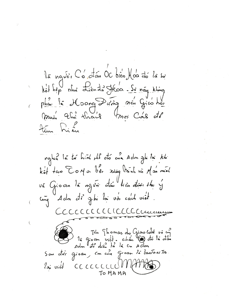 sau khi gặp ĐỨC Hồng Y tôi biết thế nào cũng có sự gặp giữa Hồng y và GM nên tôi phải gửi một số diễn tiến tôi đã qua để GM bố bíết rõ phần nào tôi đã trải qua . Bình thường tôi không khoe khoang và cho ai khi không nằm trong mục đĩch rao tin mừng chúa xuống thế dù là GM khi tôi không có sự có sẵn như HY Chúa đã đặt đẻ vào một biến cố . Cha Bố đã cho tôi biết Ngài đã đi HÀ Nội và cùng dâng Lễ Lòng Chúa Thương Xót . Tôi hỏi có nói về con ? Ngài tươi cười trả lời có . Tôi không còn là con người của sự chờ đợi mà từ kết quả chúa TÔI sẽ làm gì . Mỗi lời mỗi hành động qua những người chúa sai khiến thường có gắn kết trong tiễn trình tôi ghi nhận , cả những tác giả ngoài đời luận về linh hồn sự sống con người , trái đất lời thứ Hai MK 1984 . Hình ảnh thể hiện sau khi gửi tâp BELIEVER , MẦU XANH